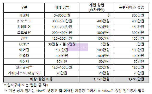 [ 평균 창업비용: 비가맹점 vs. 프렌차이즈 ]
