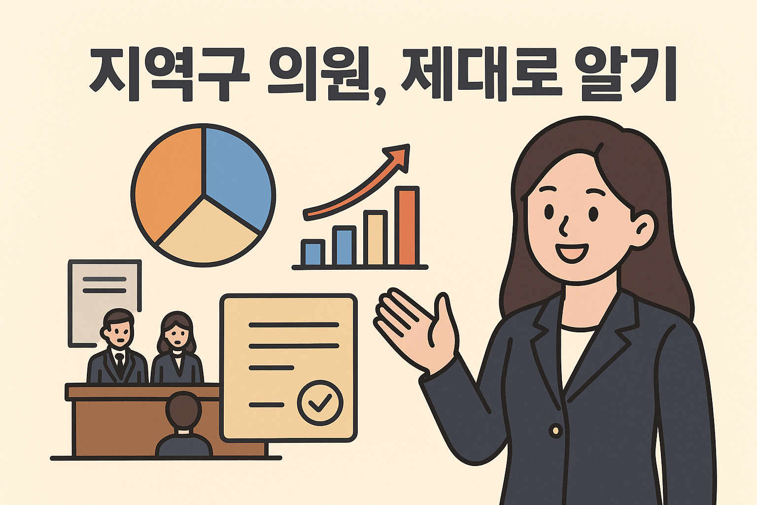 지역구의원은 우리가 사는 시, 군, 구의 지방의회에서 일하는 사람들이다. 쉽게 말해 우리 동네 대표라고 보면 된다. 국회의원이 나라 전체의 법을 만든다면, 지역구의원은 우리 동네 규칙(조례)을 만들고 예산을 어떻게 쓸지를 결정한다.