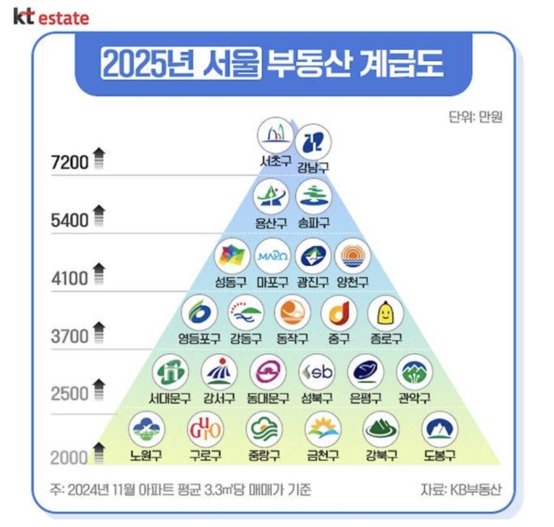 서울의 급지 분포: 강남은 여전히 최상위에 위치